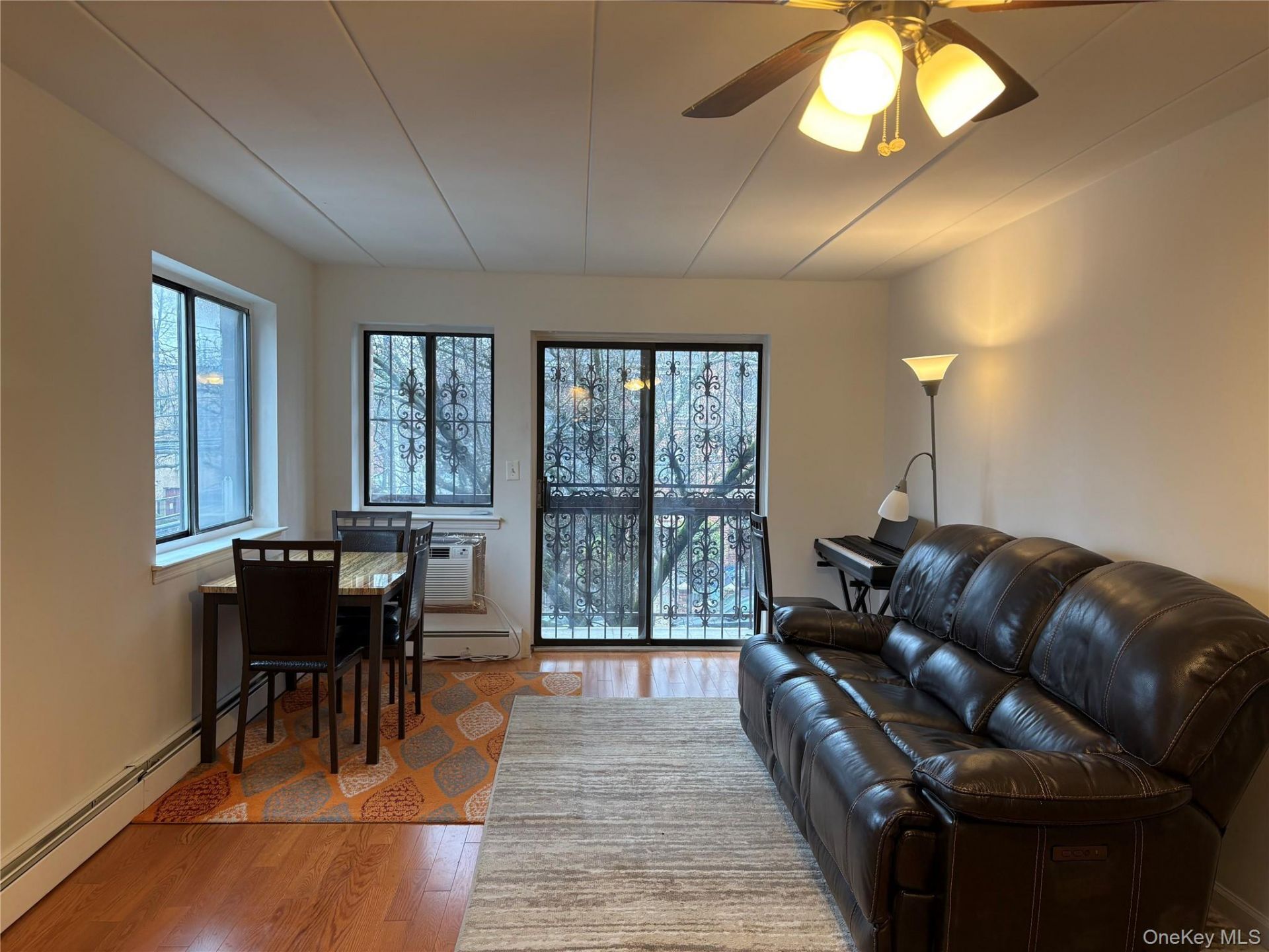 Excellent pricing. Come grab it before it is gone. Great location. Located directly across the street from Macy's and Queens Center Shopping Mall. Minutes to the R and M trains. This 2nd floor corner unit offers an ideal blend of convenience and comfort. Space is flooded with natural light through expansive windows and a sliding glass door. Bonus balcony presents great enjoyment with fresh air and relaxation. Unit is well maintained featuring beautiful hardwood floor. Washer and dryer are accessible on each floor. Very low property taxes and common charge are certainly very appealing to all potential buyers. It fits well for both owners and investors alike. The proximity to public transportation, shopping, combined with the low overhead costs, makes this a rare find in the current market. All info deeded reliable but not guaranteed, please verify on own before purchase.